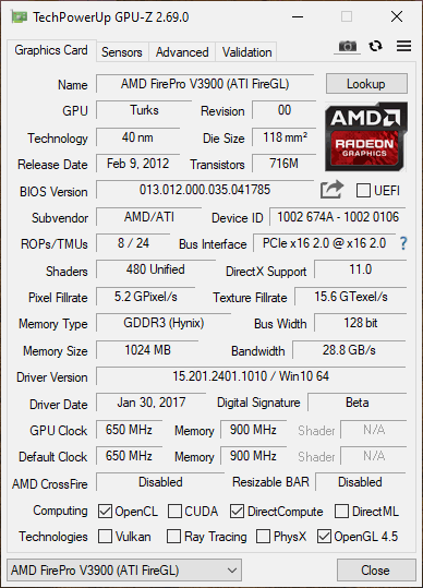 FirePro V3900 GPUZ
