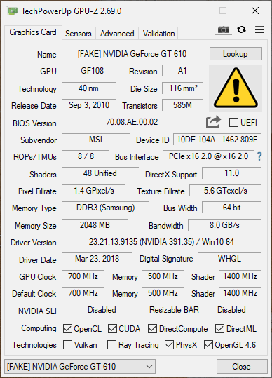 [FAKE] NVIDIA GeForce GT 610
